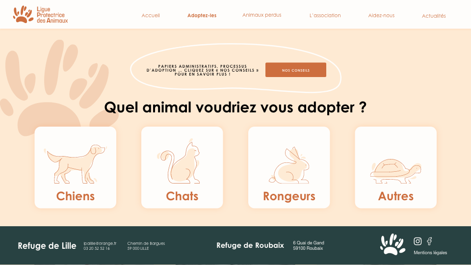 Projet commandité par la Ligue Protectrice des Animaux. Vous trouverez ci-dessous une analyse du site existant ainsi qu’une proposition d’un site internet avec une nouvelle identité graphique. Projet réalisé lors de mes études.